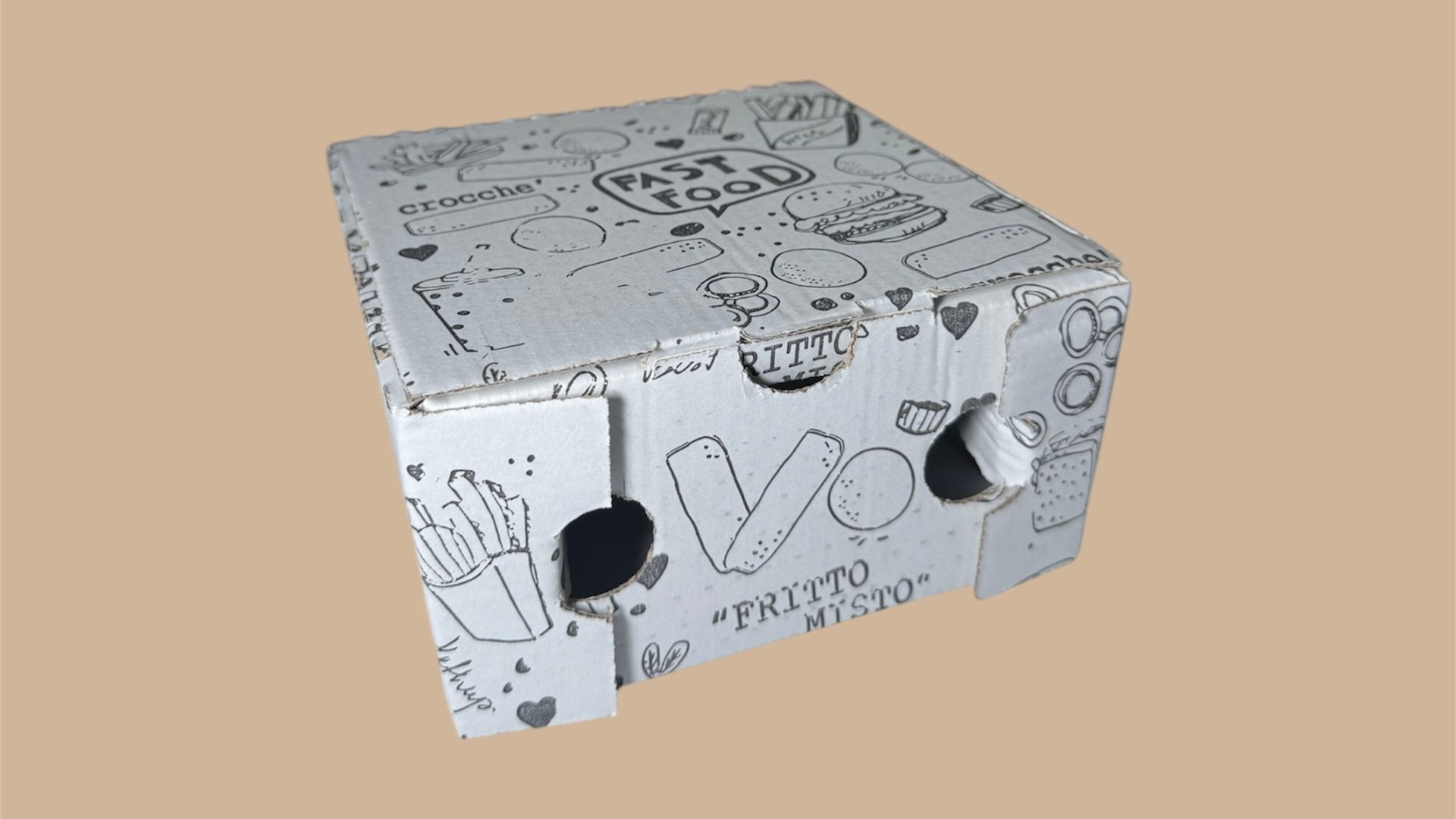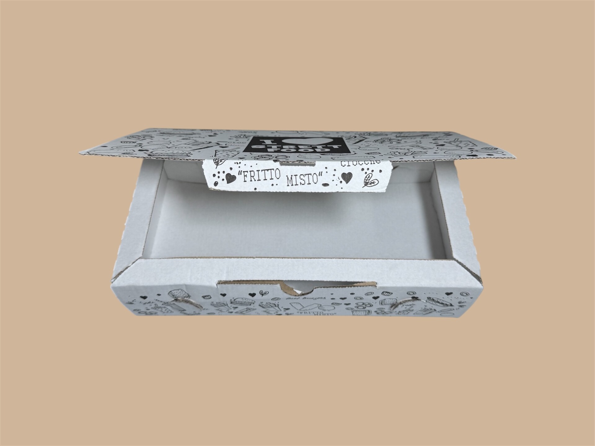 Scatole porta fritti in cartoncino adatte anche ad altre preparazioni. Ideali per pizzerie, panifici, bar, pub e gastronomie con servizio al tavolo o asporto.