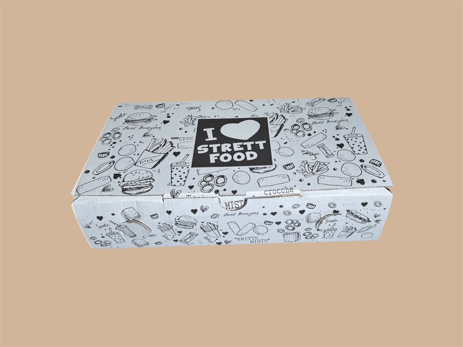 Oltre ad essere disponibili in misure più compatte rispetto ai classici porta fritti 20x16x16 e 31x16x6, queste scatole da asporto sono acquistabili con: